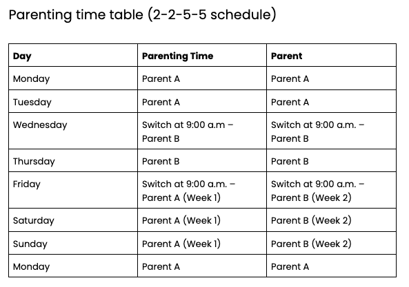 2-2-5-5 Custody Schedule Template & Sample Clause